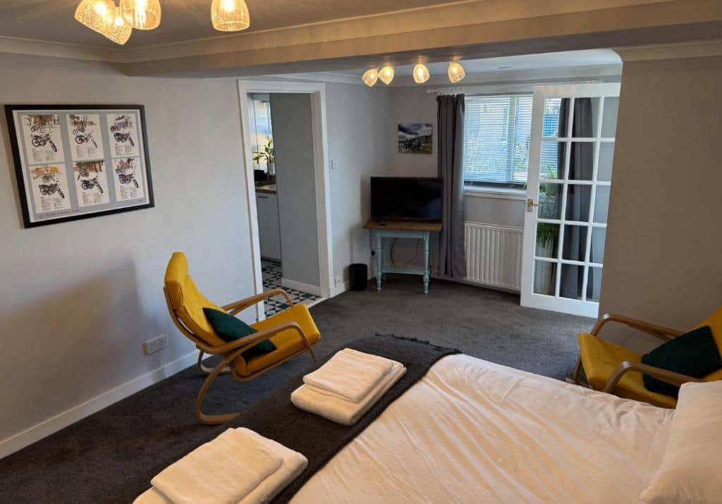 Perfect Location: Nestled in the peaceful village of Springfield, Rosebud Studio is just 13 miles from the world-famous home of golf, St Andrews, and the historic University of St Andrews – making it an ideal base for golfing events, university visits, or graduations. The studio is also conveniently located only 12 miles from Dundee, 24 miles from Edinburgh, and perfectly positioned for a comfortable stopover if you’re travelling to explore Scotland’s iconic NC500 route.